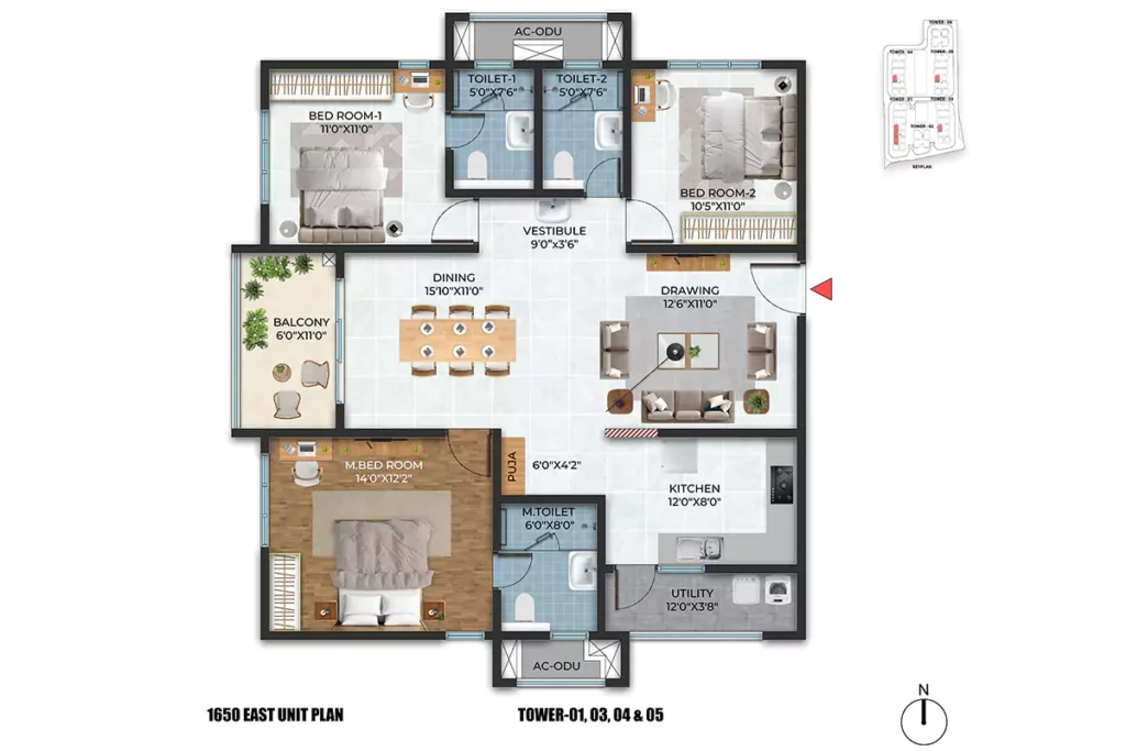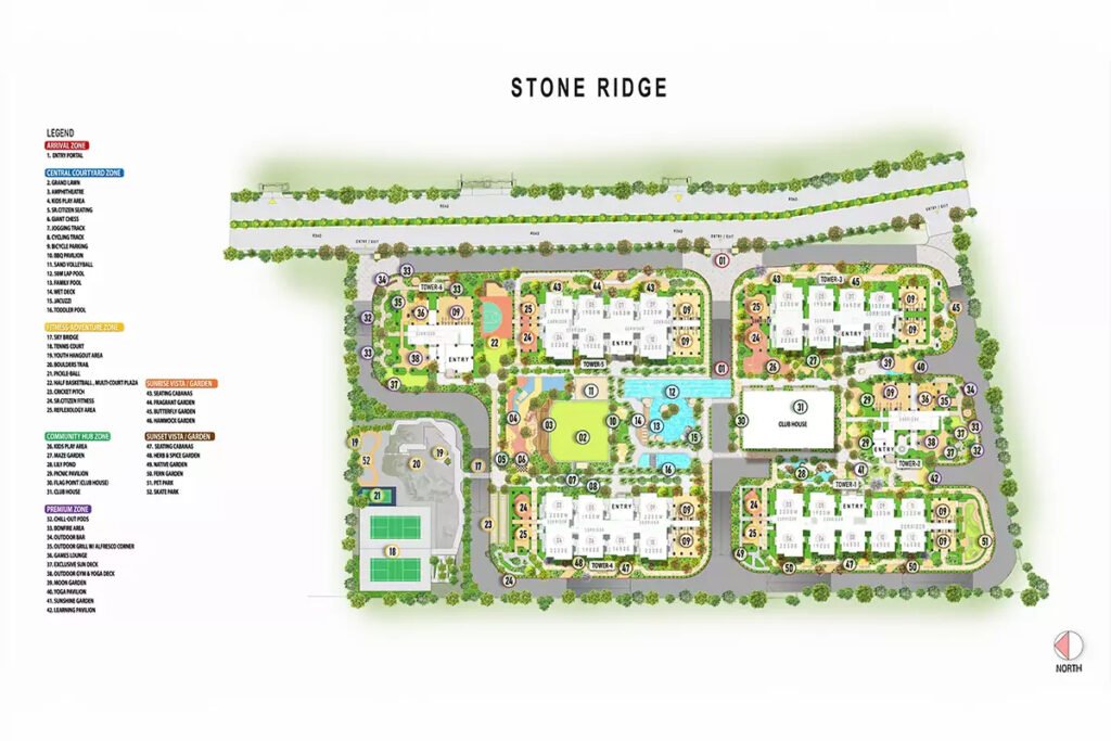 Spread across 12.33 acres with six majestic towers, Stone Ridge is a premium gated community that blends contemporary architecture with preserved natural terrain. Offering Luxury 3 & 4 BHK flats for sale in HITEC City, the project features 70% open spaces, themed gardens, and a vehicle-free podium. Every home is thoughtfully designed to provide scenic views, excellent cross-ventilation, and an elevated lifestyle, just minutes away from HITEC City, the Metro, and MMTS.