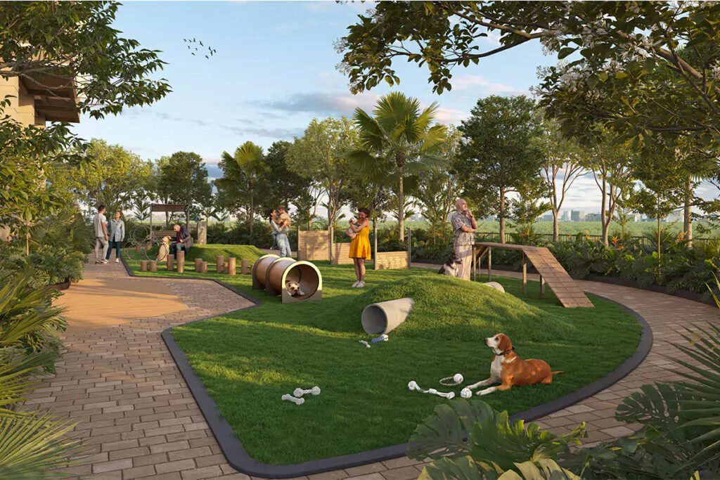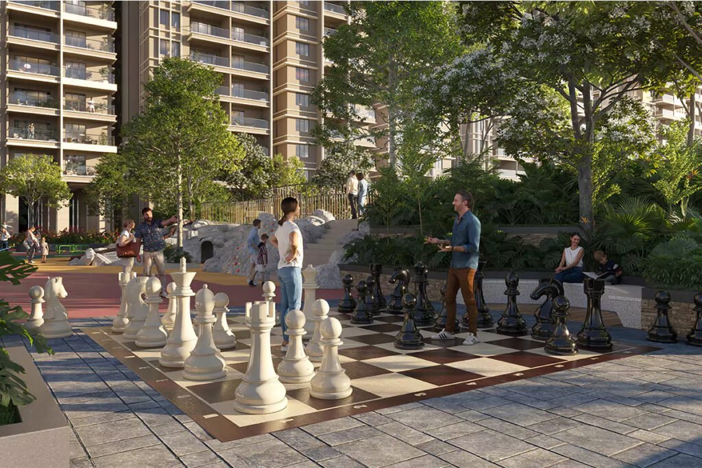 1.5 acres of landscaped bliss with amphitheatre, pools, and kids’ play zones.